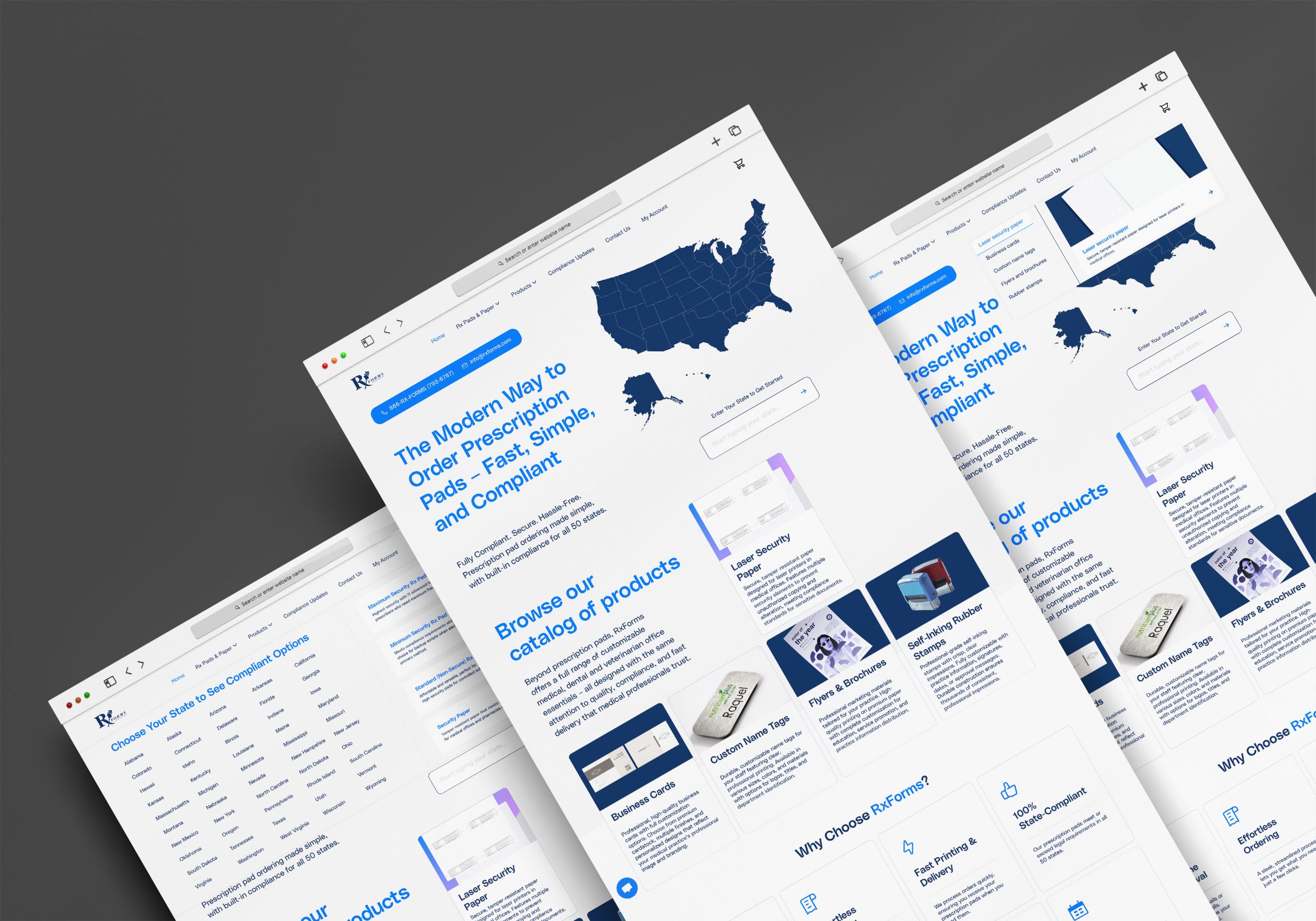 We developed the strategic messaging foundation that positions RxForms around their key differentiators: California DOJ approval, full customization capabilities, fast turnaround, and 50-state compliance guarantees. This work included comprehensive product page content, state-specific SEO strategies, and clear value propositions that speak directly to medical professionals' needs for security, compliance, and simplicity.